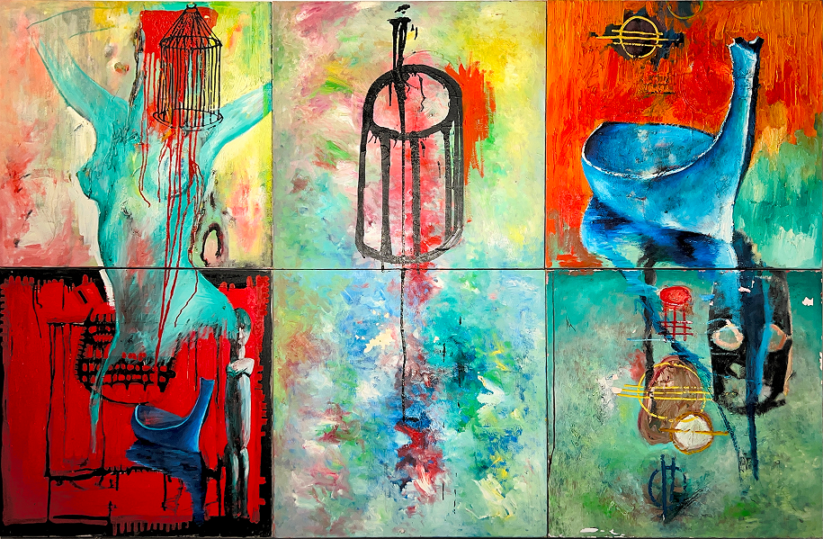 他的画面既不依赖于具象的物象,也不完全沉浸于抽象的形式游戏。每一个色块在空间中相互生成、对话、震荡,既是独立的“存在”,又在整体中构成一个可感的“意识形象”。当观者退远一步时,抽象的色块重新凝聚为某种似人、似山、似云的形态——在感知层面完成了从“非物”到“有形”的往返运动。这种动态平衡,使石村块成为一种关于“观看”的哲学实验:形式与精神在其中互为镜像,抽象与具象在当下不断生成。